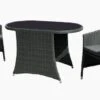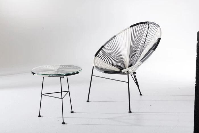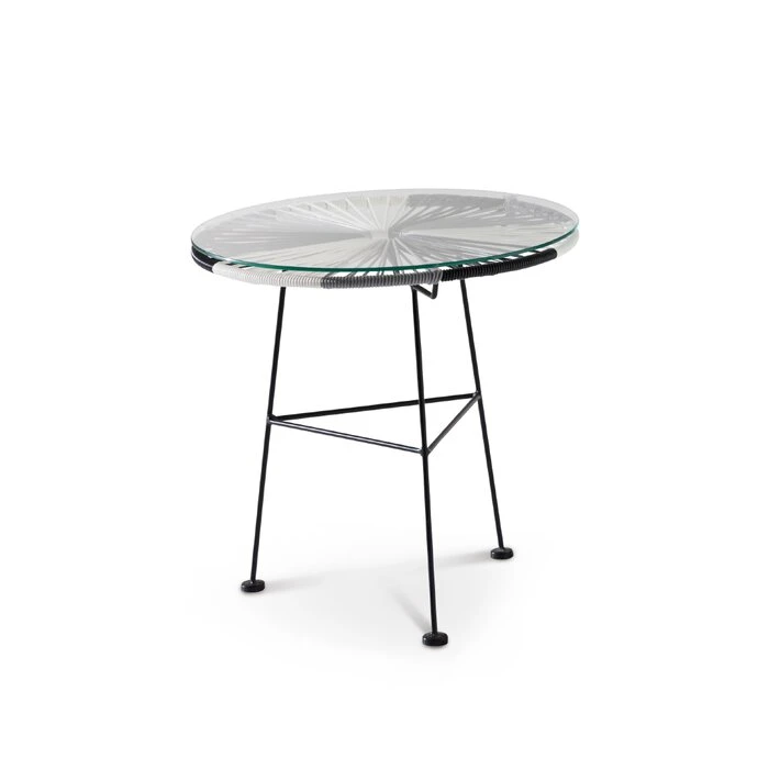 - Tischplatte aus Glas und PE-Geflecht in schwarz / weiß