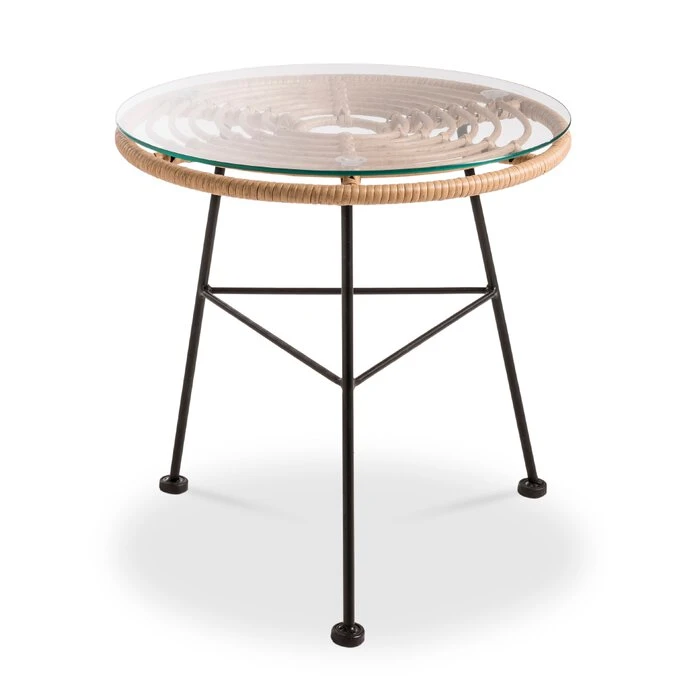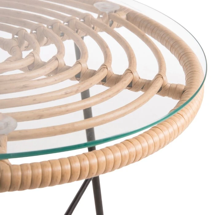 - Tischplatte aus PE-Geflecht in natur und transparenter Glasplatte