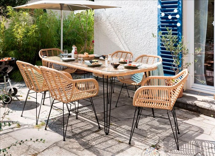 - Set besteht aus 6x Gartensessel und 1x Tisch 180 x 90 cm