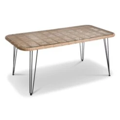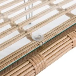 - Tischplatte aus PE-Geflecht in naturfarbe und transparentem Glas