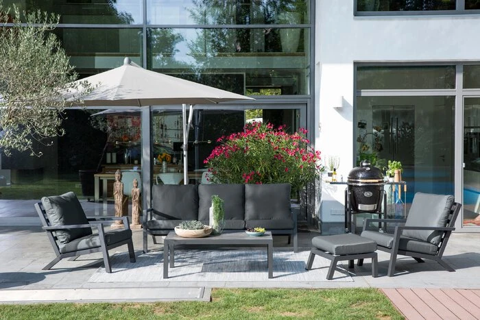 - Inkl. Sitz- und Rückenkissen in dunkelgrau