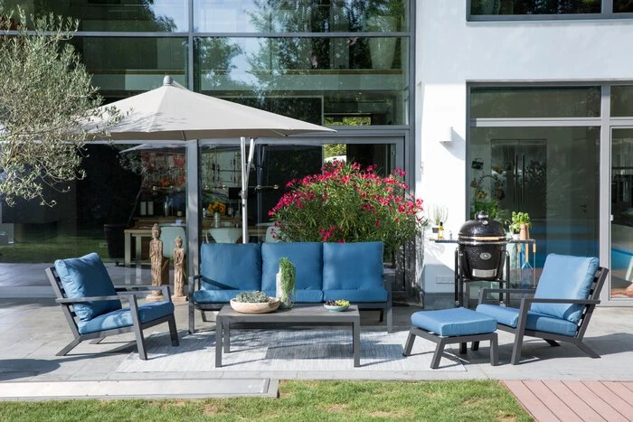 - Set besteht aus 1x 3-Sitzer und 1x Kissenbezug in blau