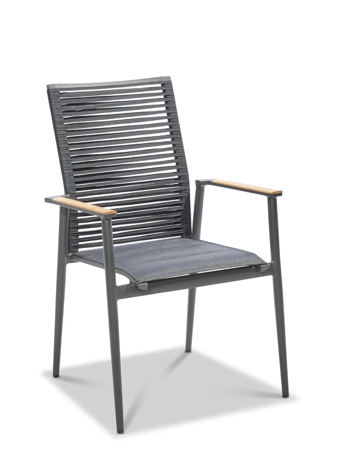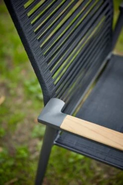 - Rückenlehne aus einer beweglichen Kordelbespannung in schwarz