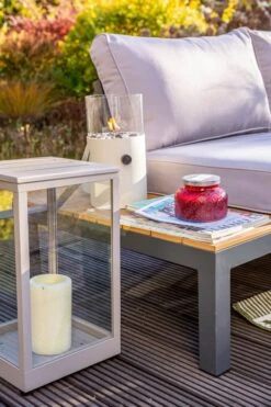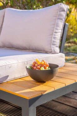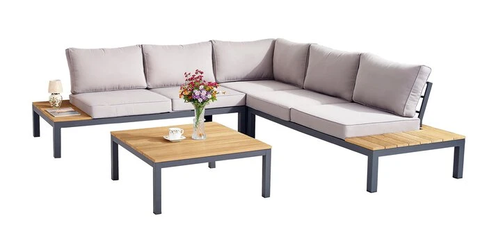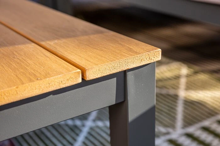 - Couchtisch aus Aluminium, Tischplatte aus Polywood