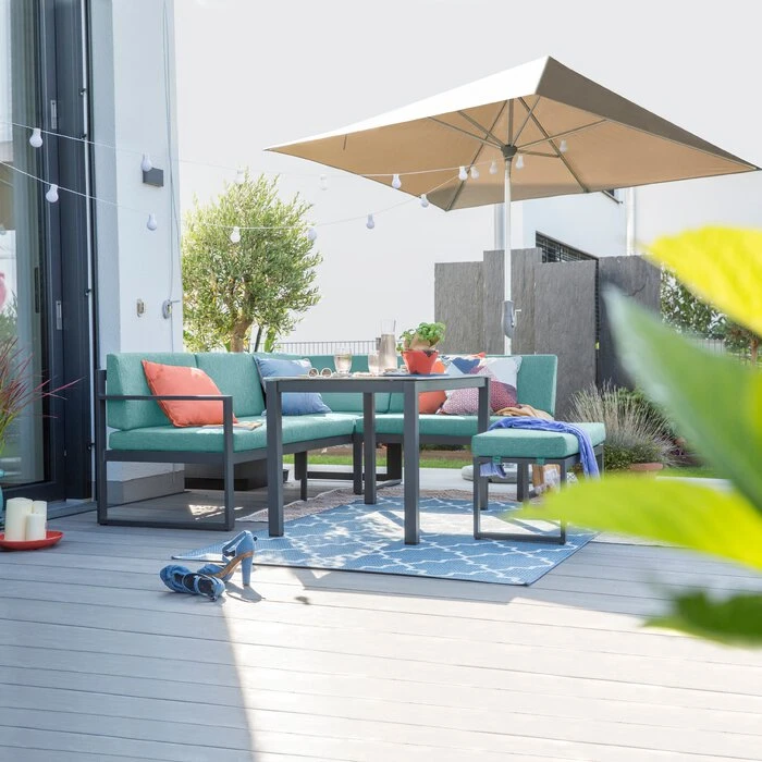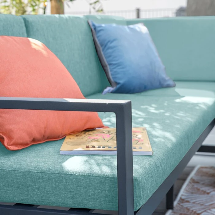 - Inkl. Kissen mit abnehmbaren Bezug aus Olefin 100% Polypropylen in tĂŒrkis, nicht waschbar