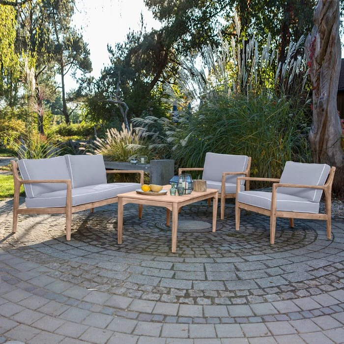 - Set besteht aus 2x Gartensessel, 1x 2-Sitzer und 1x Loungetisch