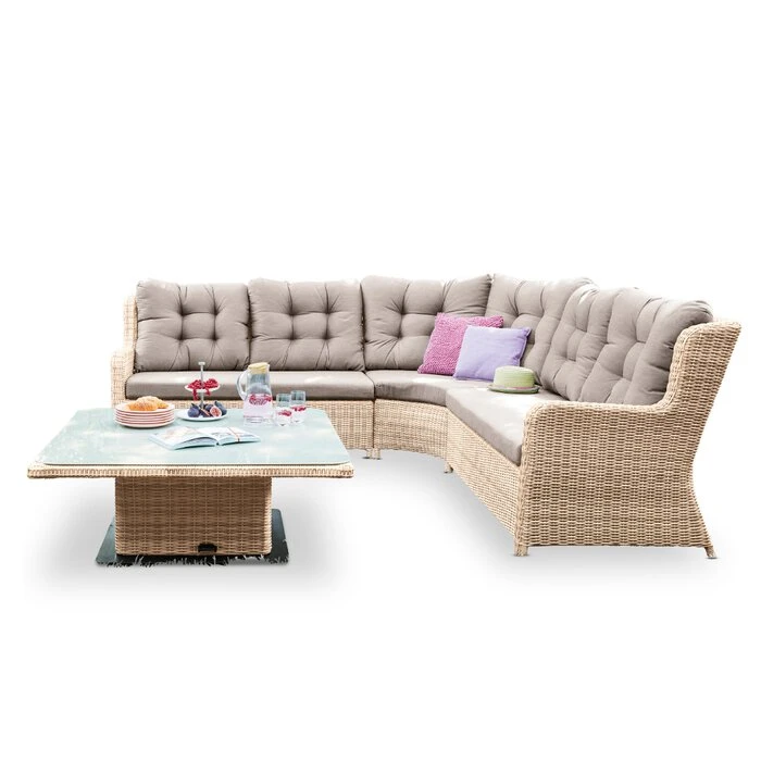 - Set besteht aus 1x Gartensofa mit Armlehne links, 1x Gartensofa mit Armlehne rechts, 1x Ecksofa und 1x Loungetisch