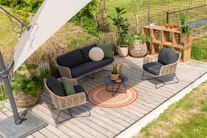 - Inkl. 1 Sitz- und 2 Rückenkissen aus 100% Olefin in anthrazit