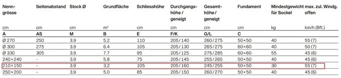 - Mindestgewicht des benötigten Schirmständer ca. 40 kg