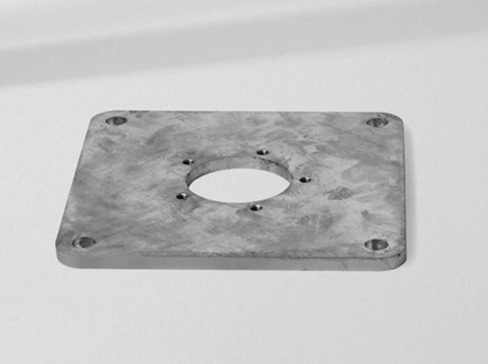 - Die Platte kann dann mittels Ankern (nicht im Lieferumfang enthalten) auf ein Fundament gedübelt werden