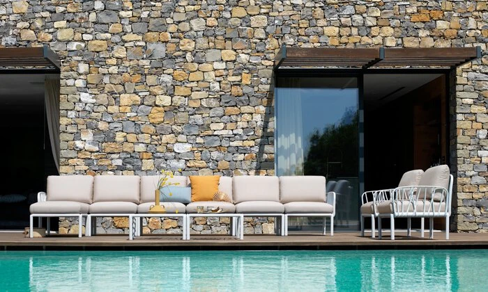 - Sitz aus Polyurethanschaum mit 53 % recyceltes Sunbrella® Polyacryl, 47% fasergefärbtes Sunbrella® Polyacryl in taupe