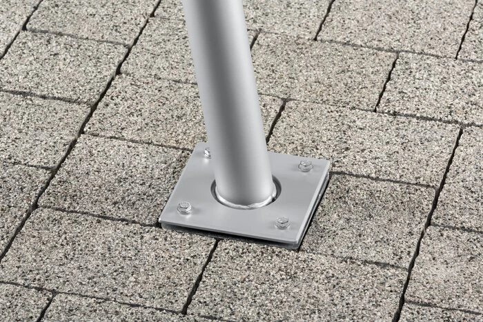 - FĂŒr ideale Ausrichtung in der Bodenplatte um 360 Grad drehbar, Befestigungspunkt stufenlos von 150 cm auf 240 cm höhenverstellbar