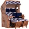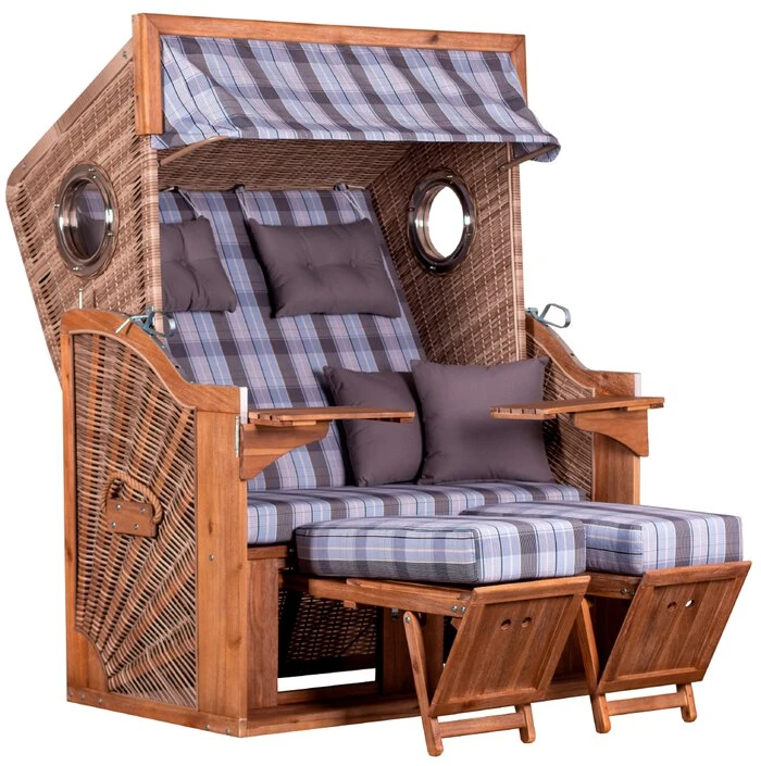 - Inkl. 2 herausziehbare und gepolsterte Fußstützen mit Höhenverstellung, Markise, 2 Cocktailtische, 2 höhenverstellbare Nackenrollen und 2 Knuffelkissen