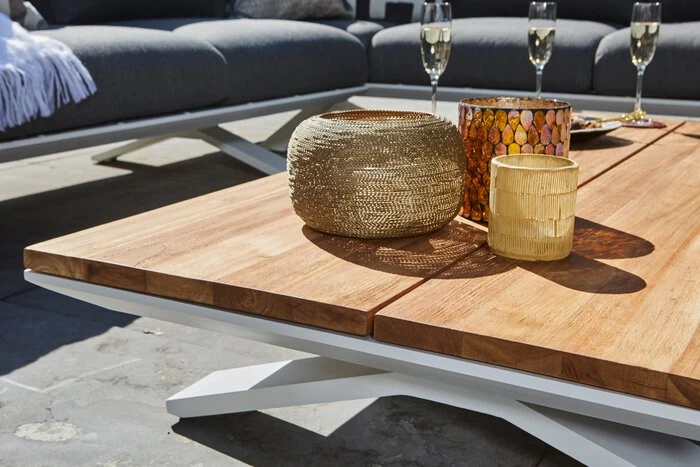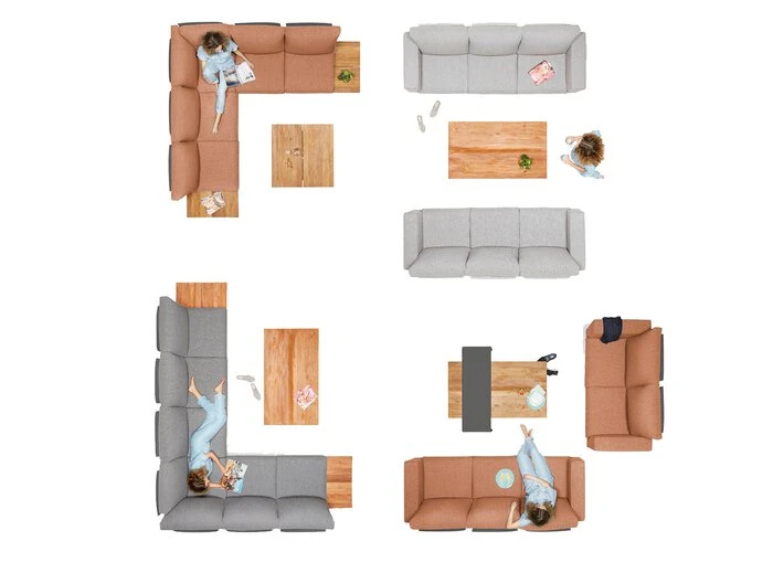 - Set besteht aus 1x 3-Sitzer mit Ecke und Seitentisch, 1x 3-Sitzer mit Seitentisch und 1x Loungetisch