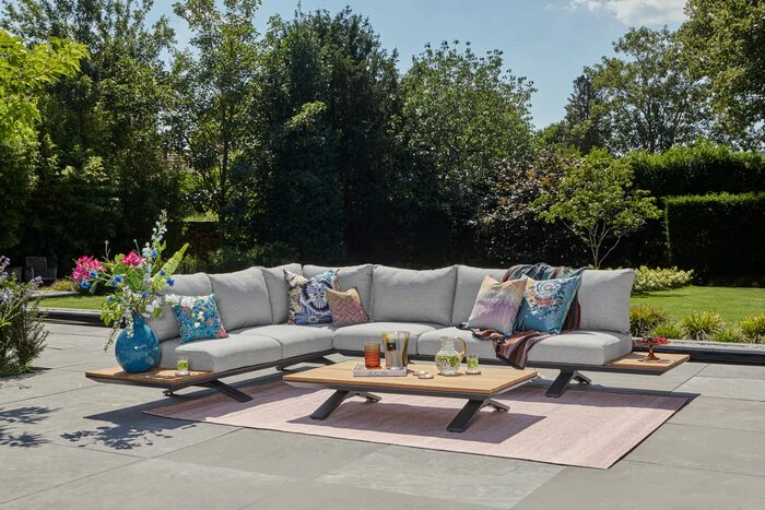 - Inkl. Kissen und BezĂŒge aus Sunproof Fontelina Stoff in soft grau